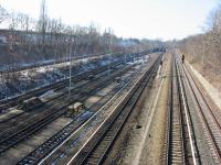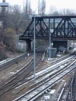 Gleise Richtung Wannsee mit Schnee, Brückenkopf Links,